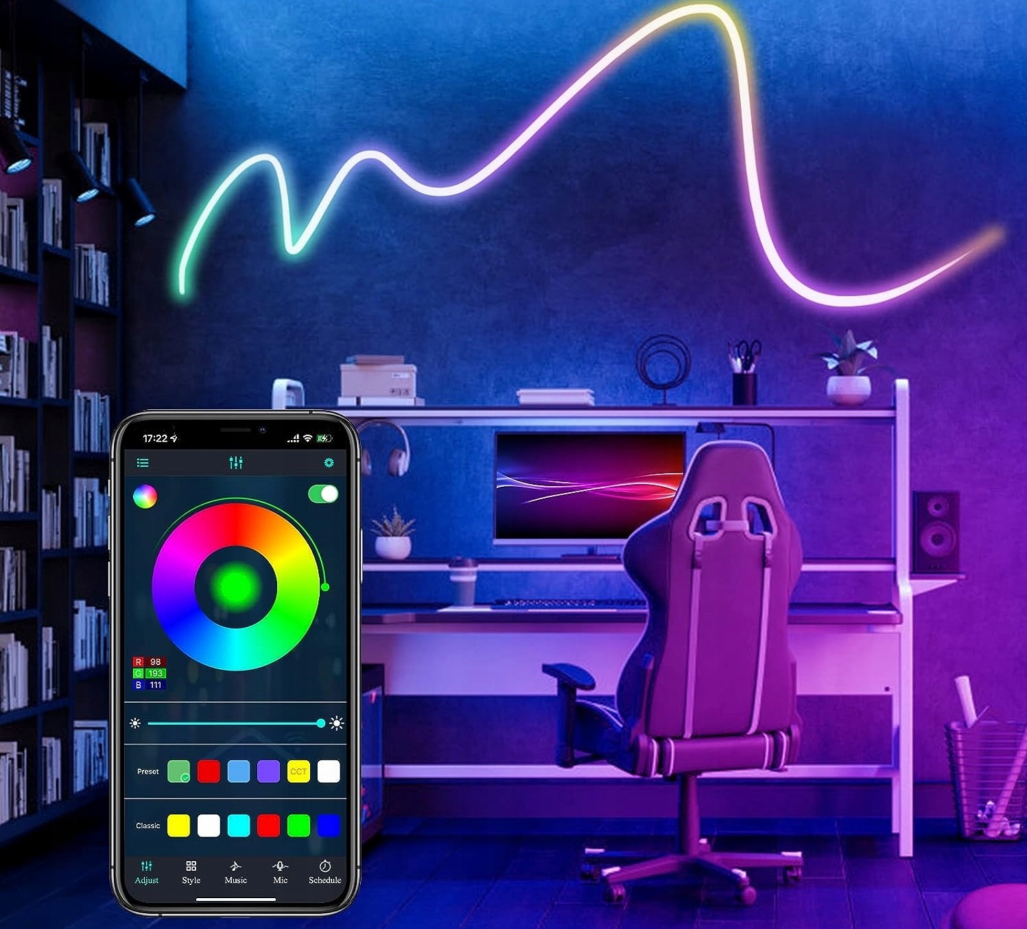Добро пожаловать в будущее домашнего освещения, где каждая стена становится холстом, а вы — художником. Откройте для себя возможности создания атмосферы, которая волнует, вдохновляет и электризует — и все это одним касанием вашего смартфона. Наша неоновая светодиодная лента RGBIC с Wi-Fi, совместимая с приложением TUYA, — это не только технологичное световое решение, но и беспрецедентный способ самовыражения.