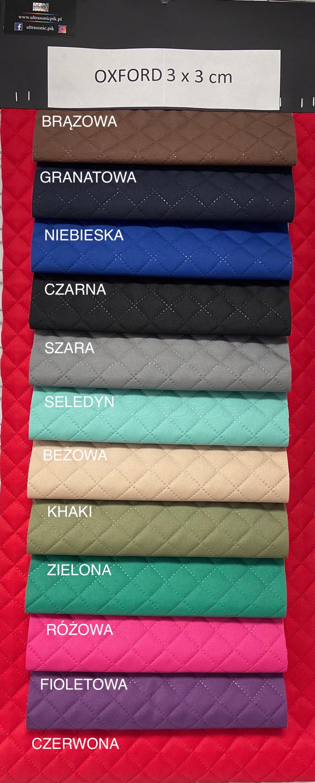 Оксфорд - ткань полиэстер, водонепроницаемая, простегана ультразвуком на обивочной подкладке. Очень прочный, легко шить. Очень эффективный, он удовлетворит даже самых требовательных клиентов. Легко монтируется и режется. Широкий выбор цветов.