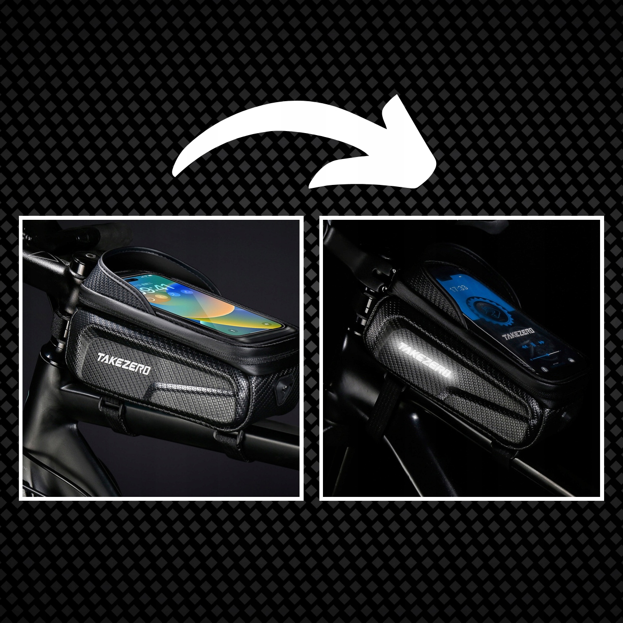 Седло имеет прозрачный карман телефона, что позволяет использовать сенсорный экран без удаления устройства - идеально подходит для навигации, приложений и соединений.