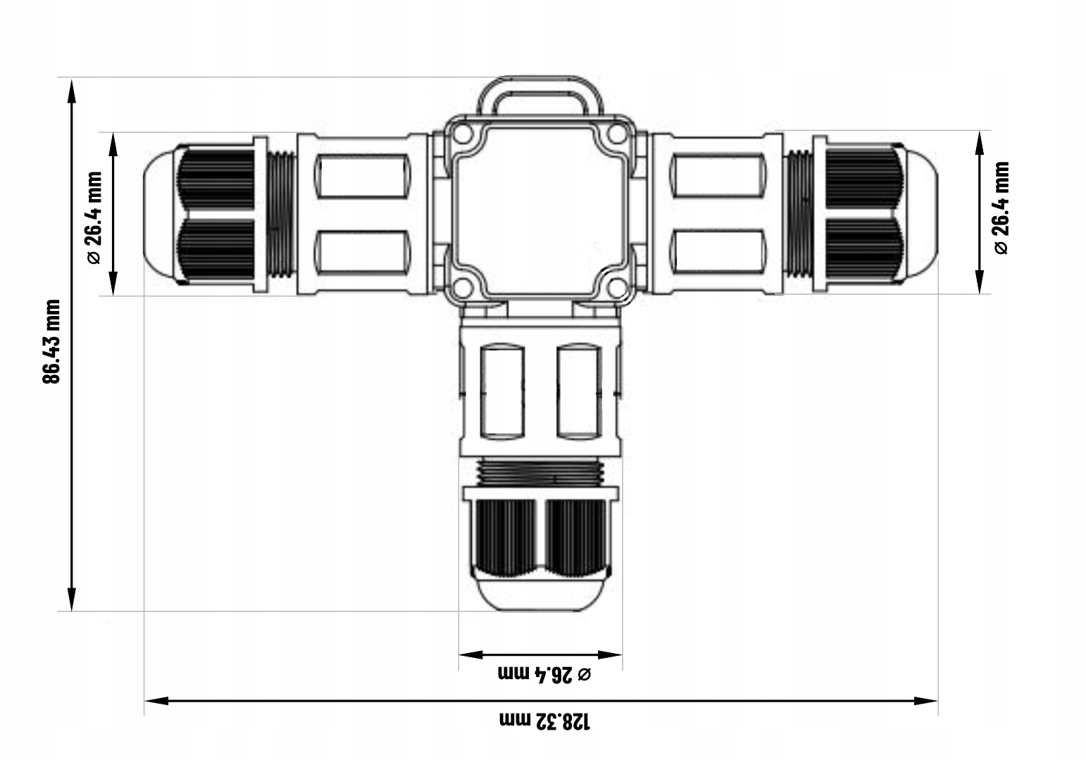 Водонепроникне кабельне з’єднання з трьома входами та безгвинтовим 3-полюсним роз’ємом 450 В