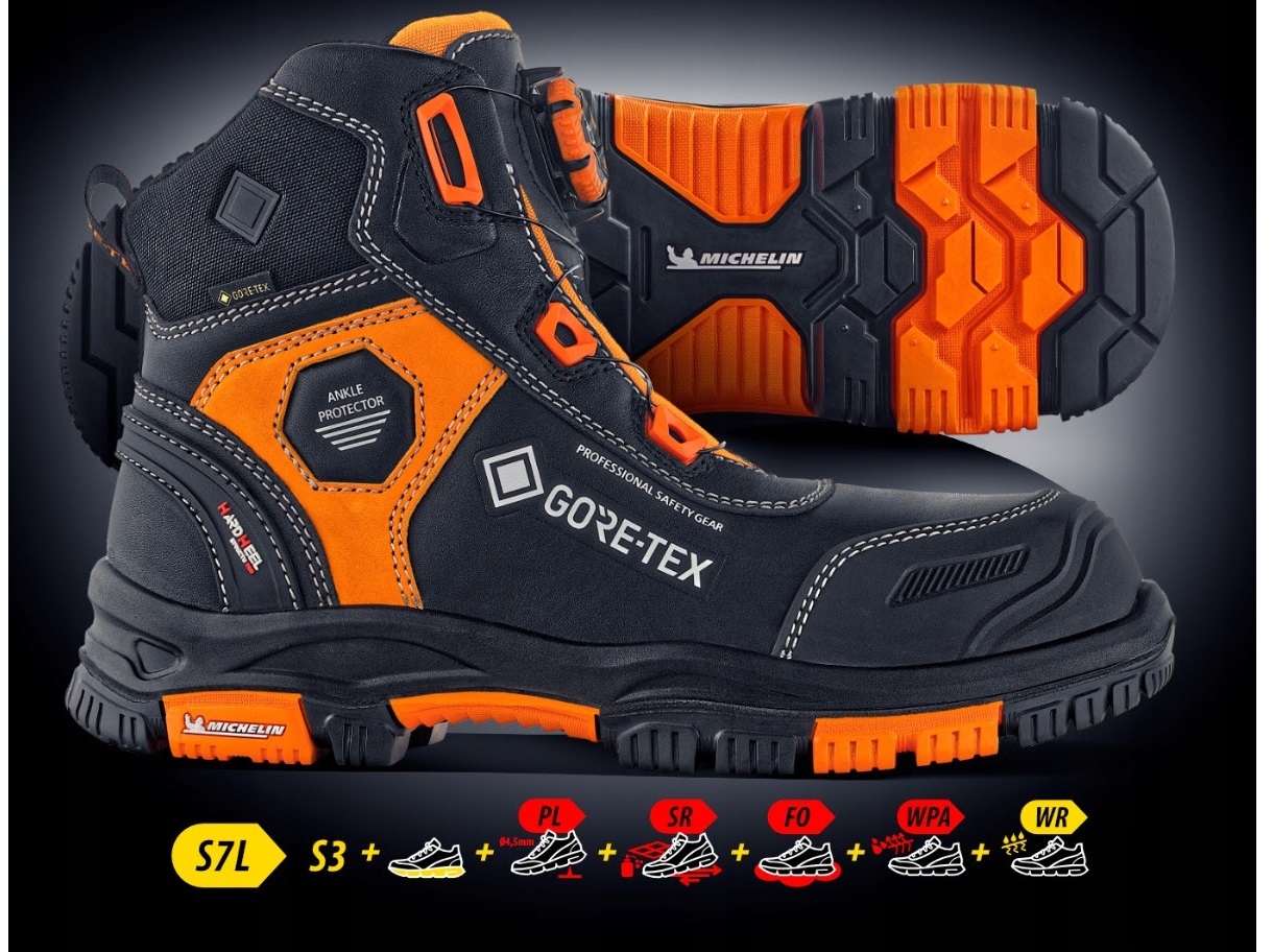 Средства требований en ISO 20345: 2022 . s7l for hro sr -с композитным подъемом, кевлар против подсчеты, гидрофобная кожа, мембрана gore-tex® , система Boa® Fit System , техническая единственная единица michelin® .