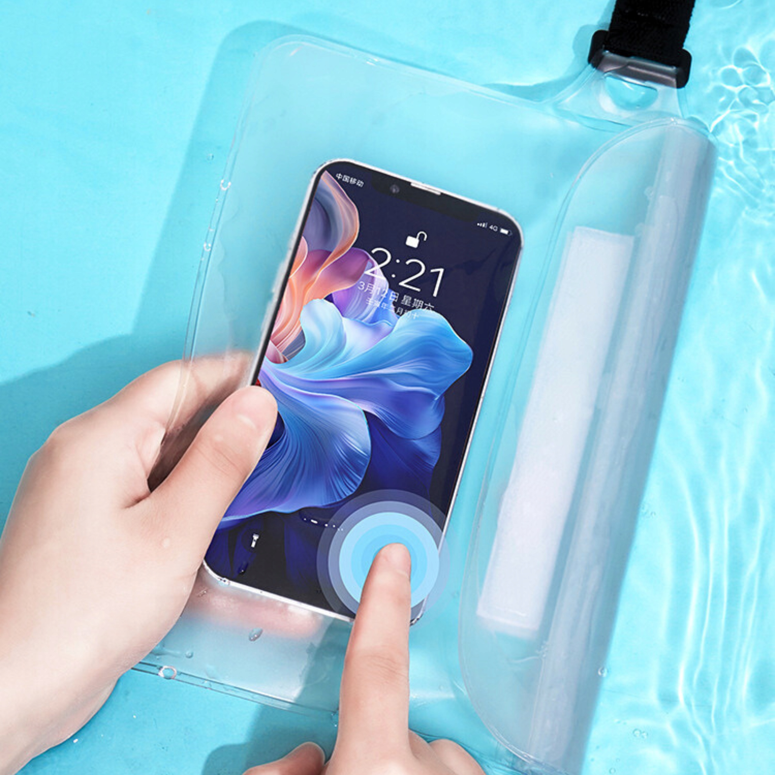 Универсальный водонепроницаемый корпус с поясом b>, идеально подходит для телефона, документов и денег. Он имеет прозрачный фронт для эксплуатации и защиты от воды, песка и пыли.