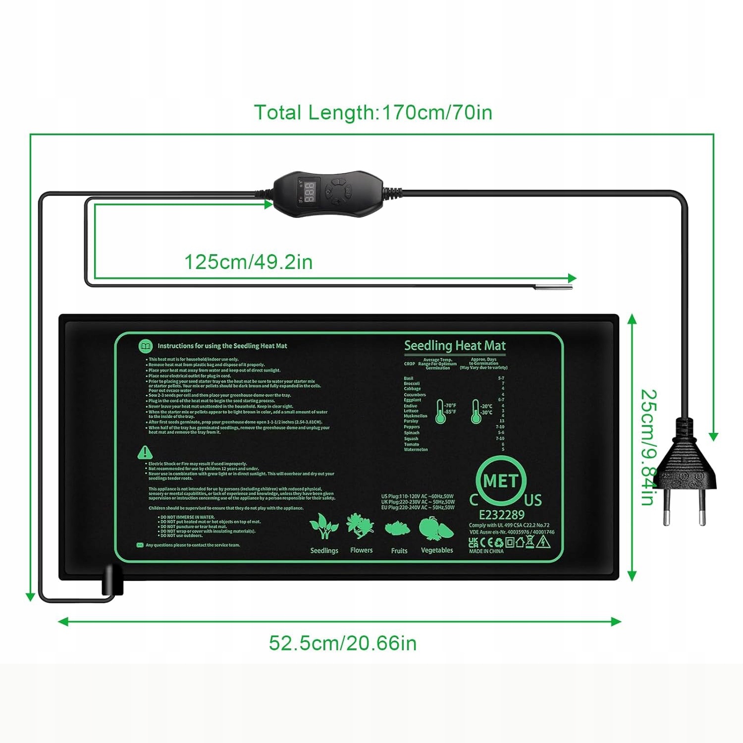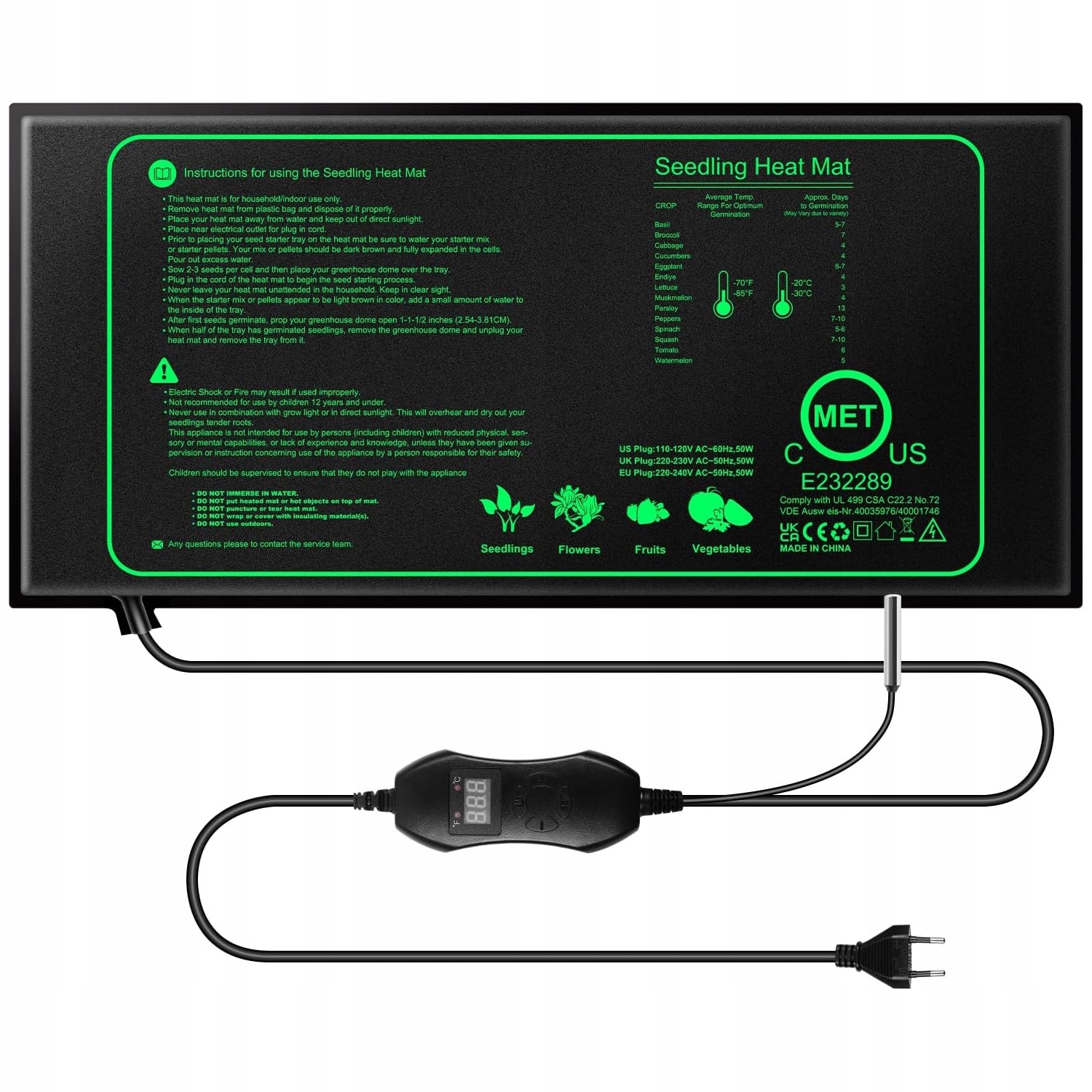 🌱-Заданную температуру можно регулировать от 20°C (68°F) до 45°C (113°F), что подходит для разных растений и стадий роста.