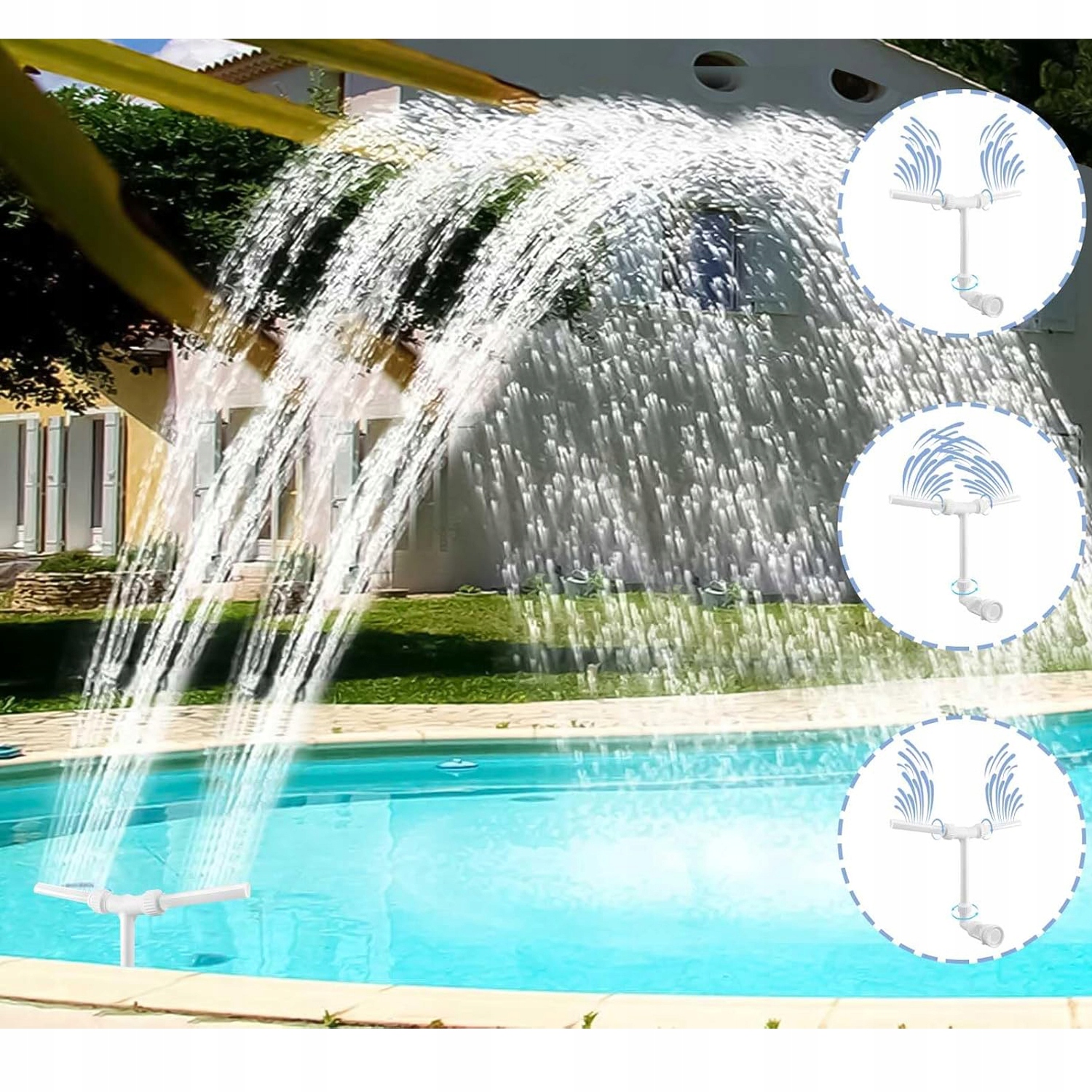 ✅ Желательный эффект. Используя насос 3/4 л.с. или , больший фонтан может быть отрегулирован в направлении и высоте (до 5 м/14 футов).