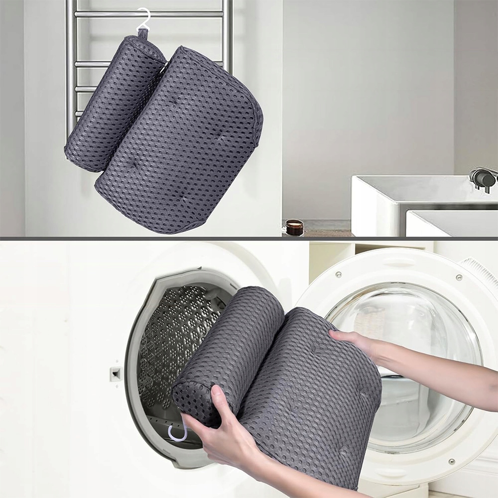 Эту подушку для ванны легко чистить, ее можно стирать вручную или в стиральной машине с мягким моющим средством. Благодаря встроенному крючку подушку можно повесить на вешалку для полотенец или крючок для халата для легкой сушки и удобного хранения.