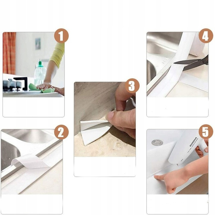 Уплотнительная лента используется для герметизации ванны, душевого поддона или умывальника. Благодаря гибкому слою он прилипает и к слегка неровным поверхностям, поэтому его можно использовать не только на кухне, но и в других помещениях дома. Он водонепроницаем и дополнительно устойчив к чистящим средствам, влаге и маслам.