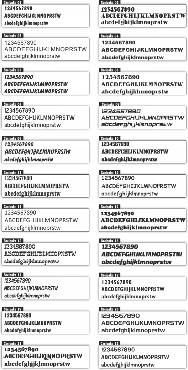 Доступные цвета и шрифты фольги: