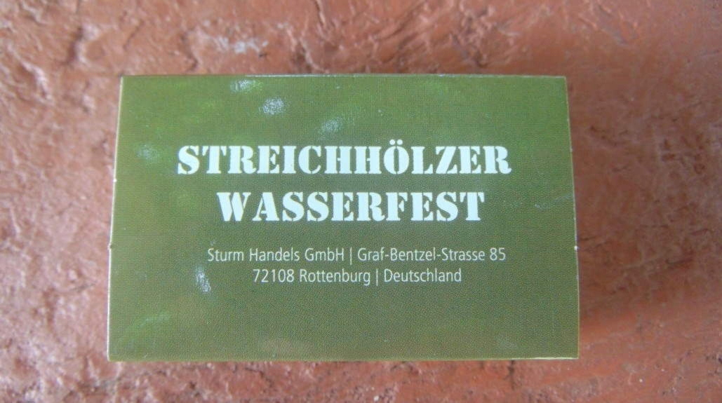 <р> Зажечь огонь или прикурить сигарету мокрыми спичками – это почти чудо. <р> Поэтому мы приходим к вам на помощь и предлагаем водонепроницаемые спички, которые сэкономят вам массу времени и нервов. Благодаря специальной пропитке их можно обжигать даже во влажном состоянии. <р> В одной упаковке 35 спичек. В наборе четыре упаковки спичек. <р> Если вы больше не хотите нервничать, например, при разжигании огня, рекомендуем приобрести наши спички. <р> <р> Спецификация: <р> - Производитель Мил-Тек, <р> - В наборе 4 упаковки спичек, <р> - водонепроницаемость, <р>