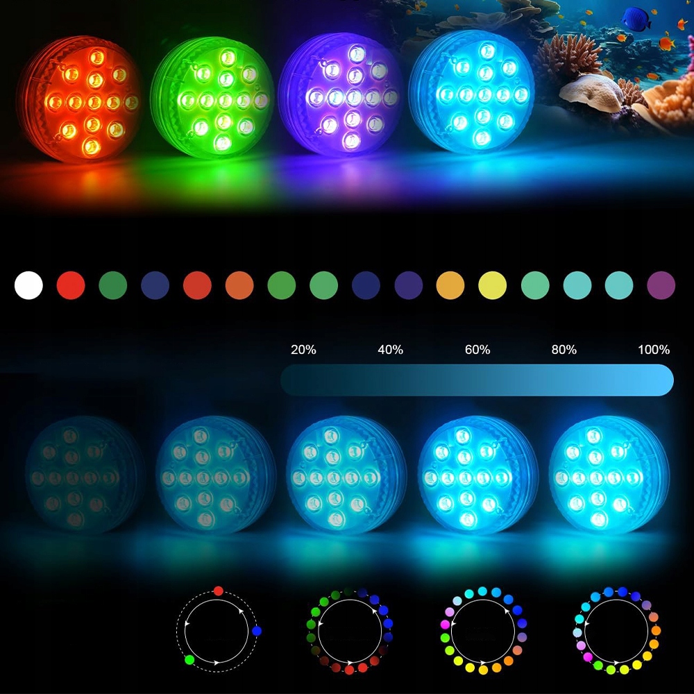 ВОДОСВЕЩЕНИЕ IP68 4 ШТ. С 4 ПУЛЬТАМИ ДИСТАНЦИОННОГО УПРАВЛЕНИЯ ДЛЯ АКВАРИУМА 13 светодиодов