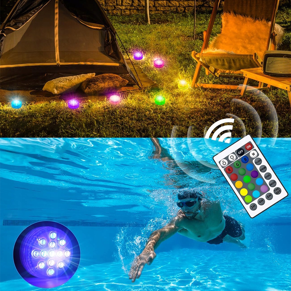 - Подводное светодиодное освещение можно использовать для освещения вечеринок/мероприятий, праздничного акцентного освещения, внутреннего и наружного освещения, акцентного освещения дома, цветочных композиций, прозрачных чехлов и украшений для вечеринок.