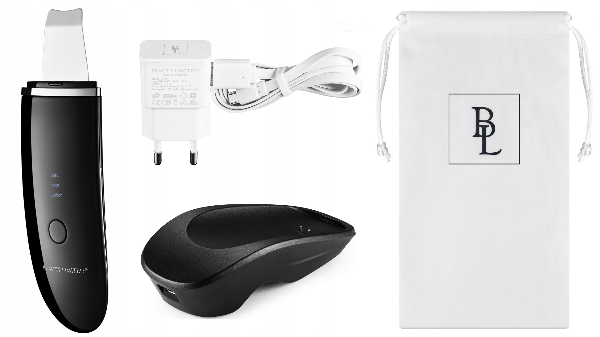 Элегантный набор в фирменной упаковке с логотипом Beauty Limited®. В комплект вместе с зарядной базой и устройством для очистки также входит материальный чехол с оригинальным логотипом, благодаря которому вы сможете легко и практично хранить устройство.< /б >
