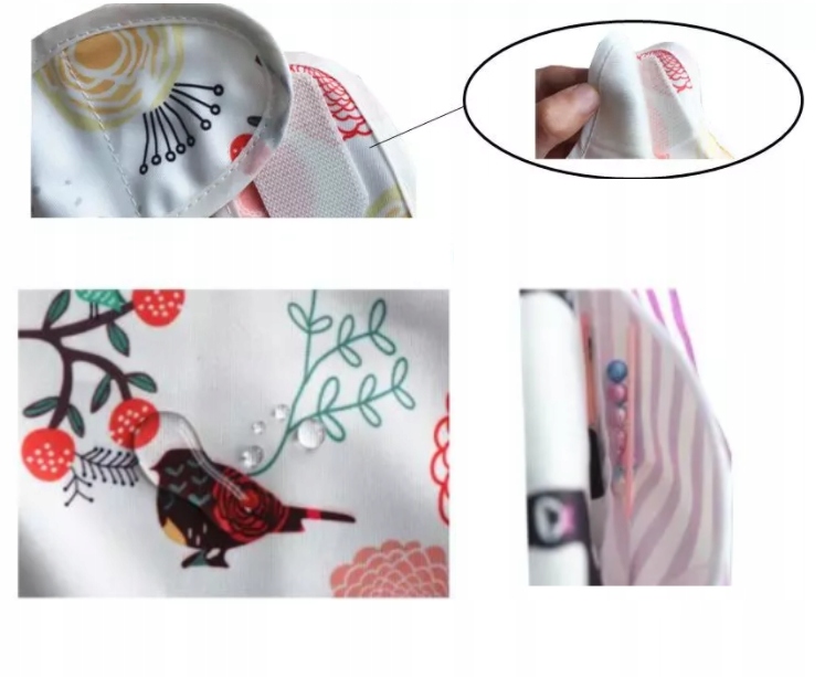 Мягкий детский фартук из полиэстера PUL (полиэстер, ламинированный слоем ПТУ), что обеспечивает полную водонепроницаемость > и в то же время приятен на ощупь.