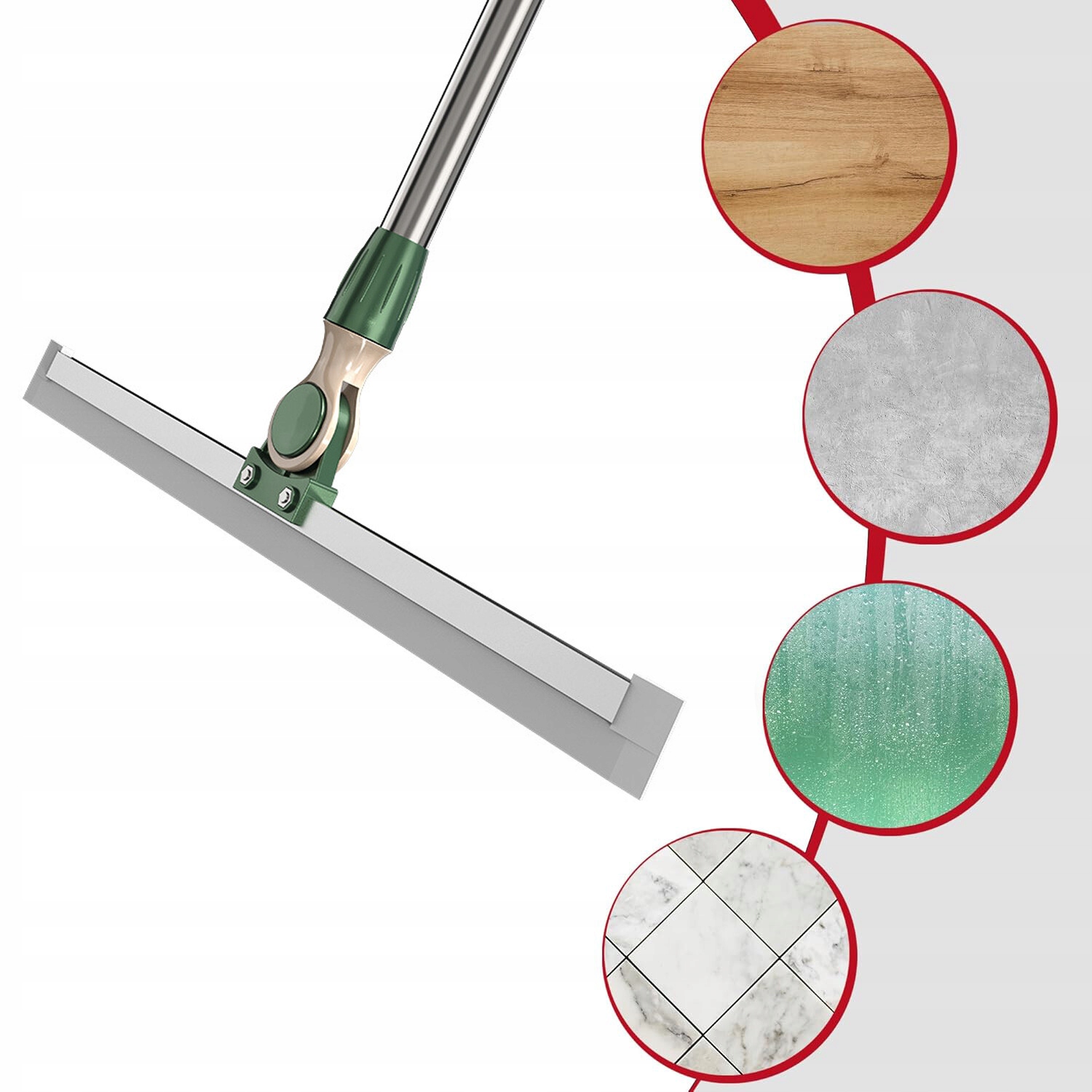 Идеально подходит для удаления пятен от воды: большая швабра длиной 52 см удаляет большие пятна от воды одним движением, повышая эффективность очистки. Ракель эффективно удаляет пятна от воды, грязь и волосы и может использоваться в различных местах, таких как гостиная, кухня, ванная комната, окна и бассейн.