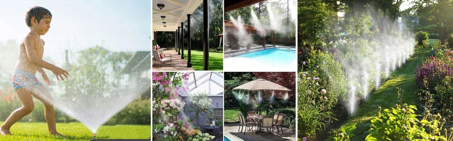 Высококачественные насадки создают очень легкую и нежную водяную завесу, которая контролирует температуру окружающей среды и позволяет эффективно ее снижать. Диаметр сопла 6 мм создает «садовый кондиционер».