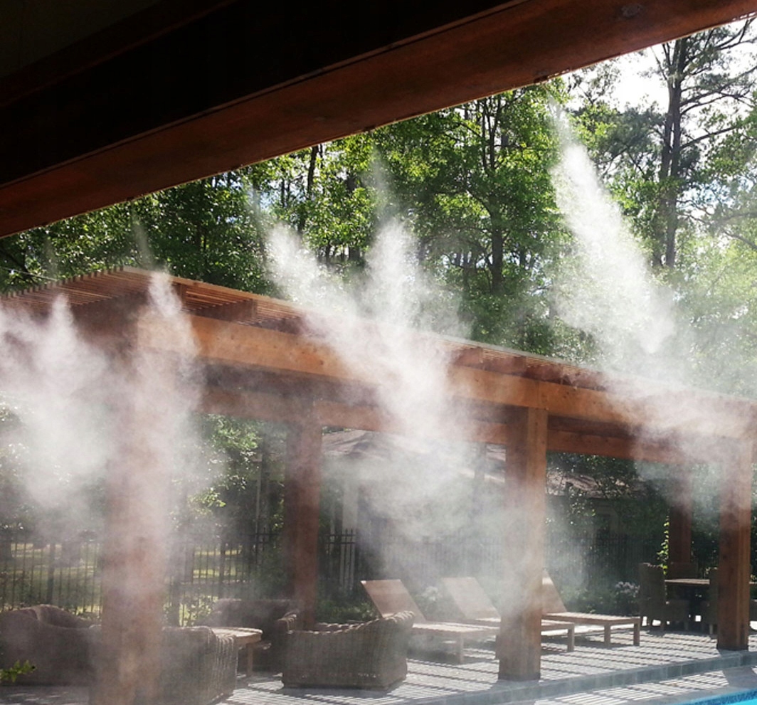 - форсунки распыляют туман, который охлаждает окружающую среду, снижая температуру до 11 градусов.