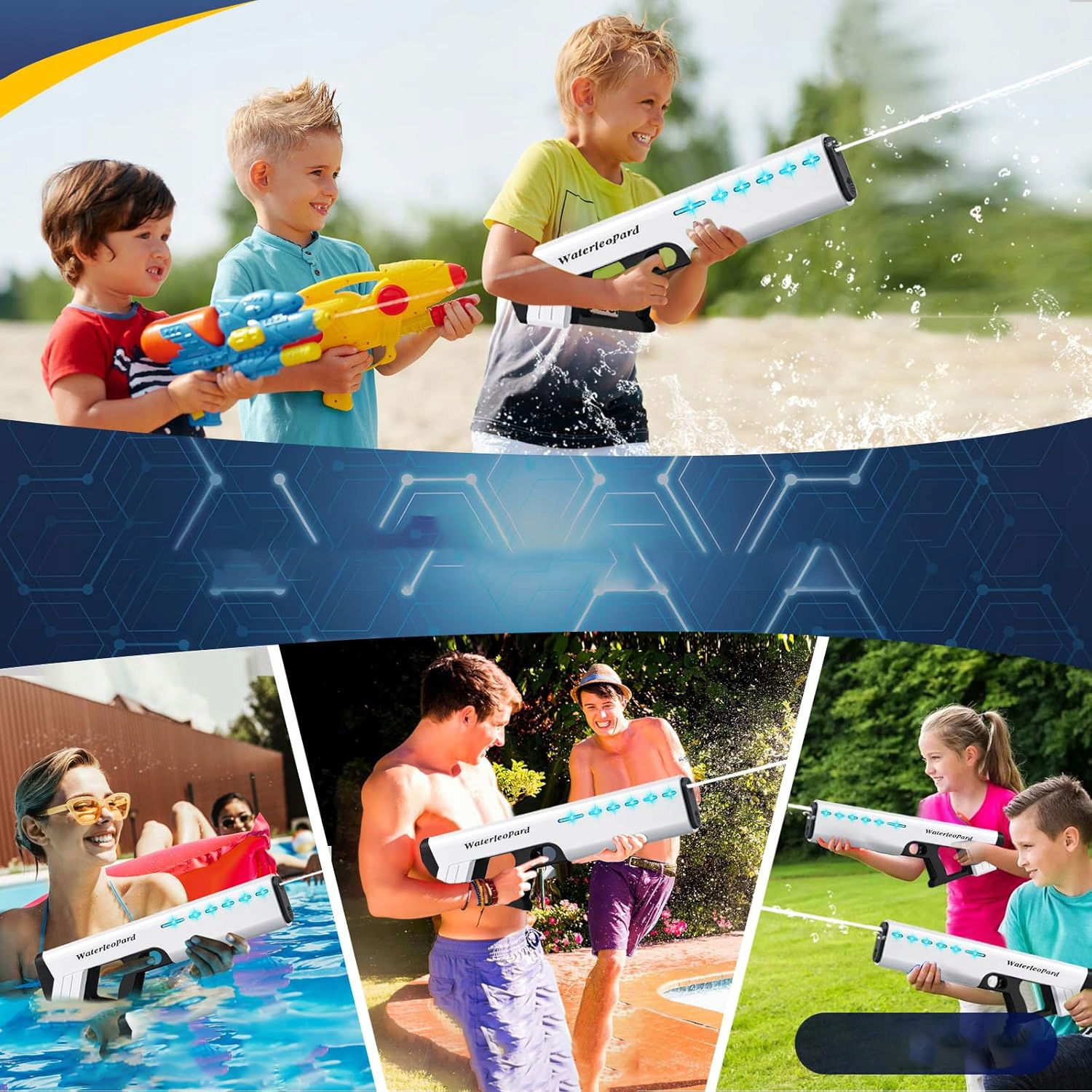 ⭐⭐Электрический водяной пистолет 800 мл 2 в 1 Водяной пистолет для детей Электрический светодиодный водяной пистолет с автоматической защитой от воды Большой водяной пистолет для бассейнов, садов и пляжей⭐⭐