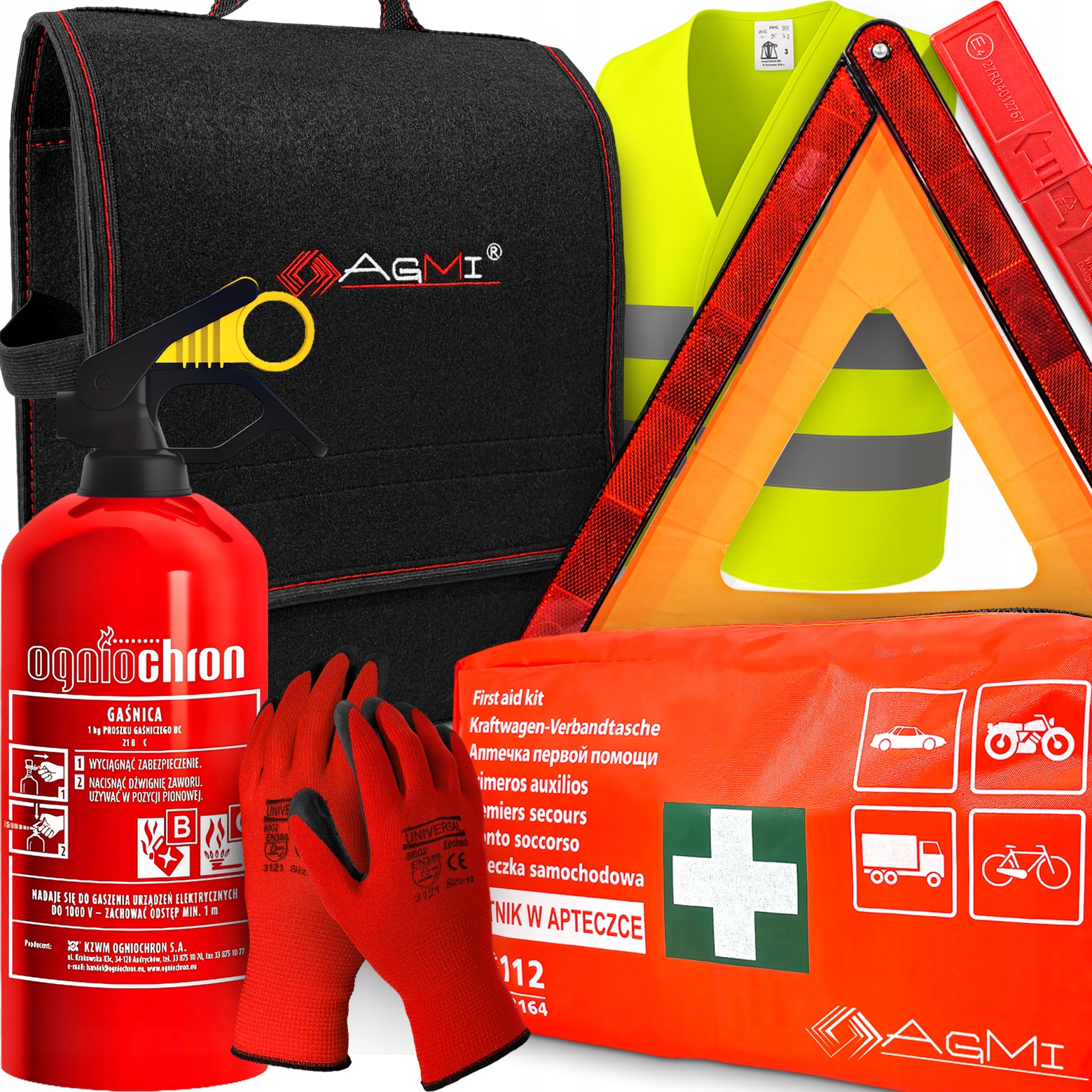 ✅ Пожарная борьба 1 кг | ✅ Комплект первой помощи ✅ отражающий жилет ✅ Треугольник ✅ Перчатки ✅ Транспортный пакет