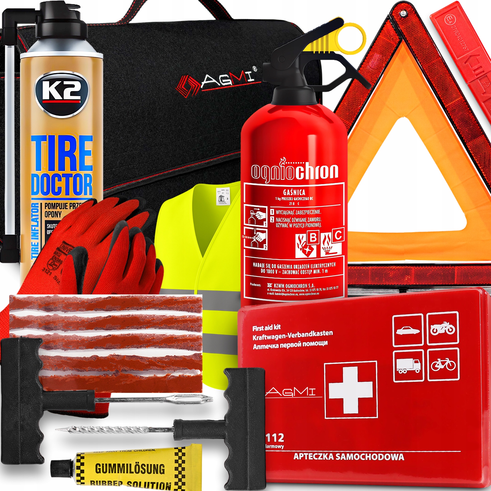 ОГНЕТУШИТЕЛЬ 1 КГ ПОЖАРНЫЙ НАБОР СУМКА K2 ШИНЫ ТРЕУГОЛЬНЫЕ ПЕРЧАТКИ НАБОР ДЛЯ РЕМОНТА ШИН