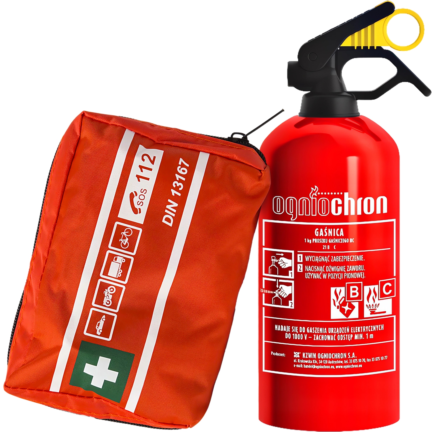 🚒 КОМПЛЕКТ БЕЗОПАСНОСТИ: ОГНЕТУШИТЕЛЬ 1 КГ ПОЖАРНАЯ ЗАЩИТА + ПЕРВЫЙ КОМПЛЕКТ DIN13167 🚑