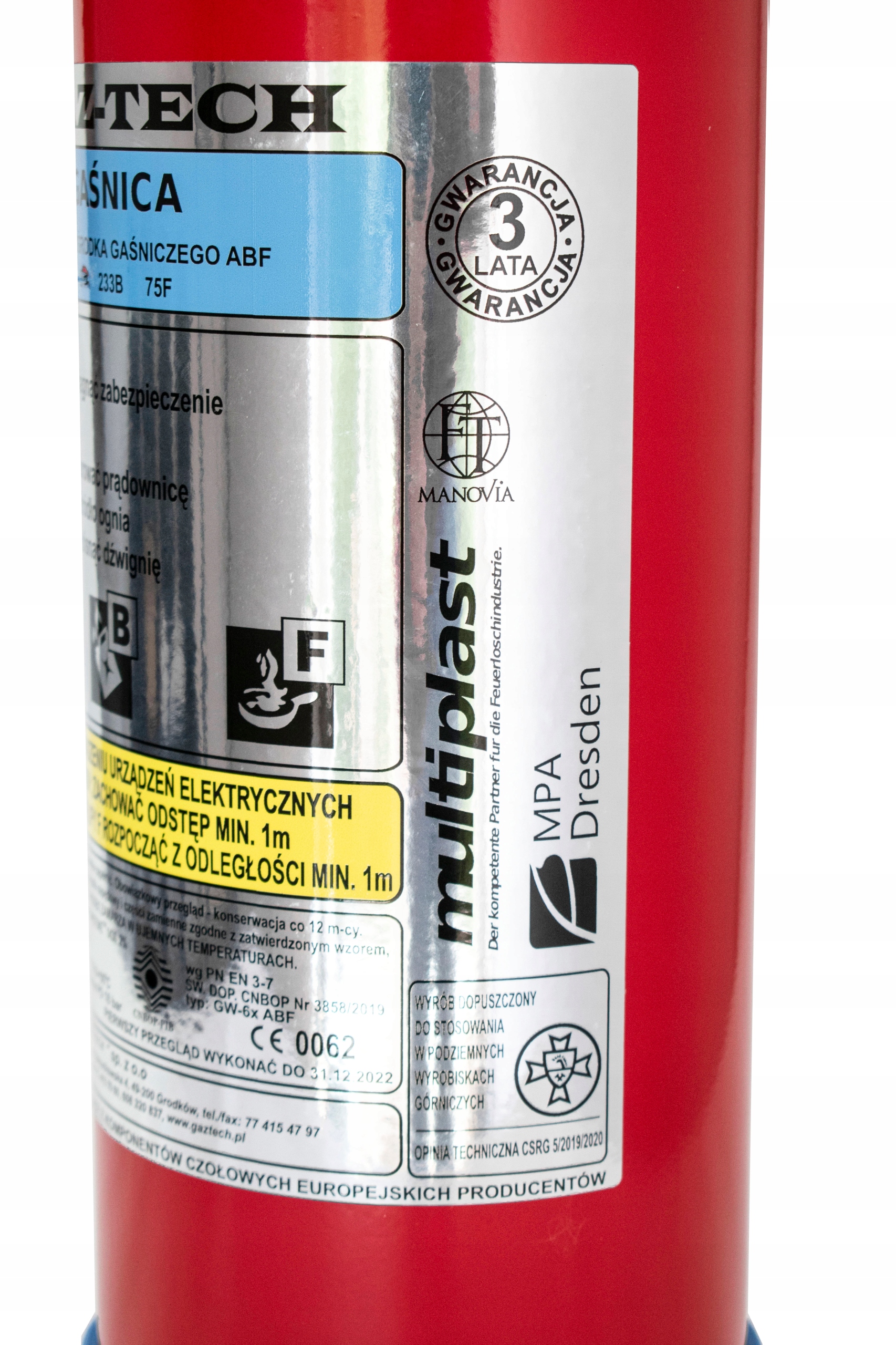 Жидкий огнетушитель GW-6X AB, ABF* предназначен для немедленного тушения пожаров. Рекомендуется для тушения пожаров твердых тел, например, дерева, пластмасс, тканей и т.п., легковоспламеняющихся жидкостей, создающих пламя, а также пищевых масел и жиров, фритюрниц, устройств для выпечки и жарки, а также их фильтров и вытяжек (вытяжек). на кухнях, столовых и ресторанах.