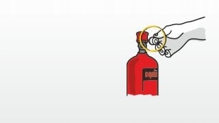 4. Потушить источник пожара струей огнетушащего средства до тех пор, пока огонь не погаснет. Держите огнетушитель вертикально.