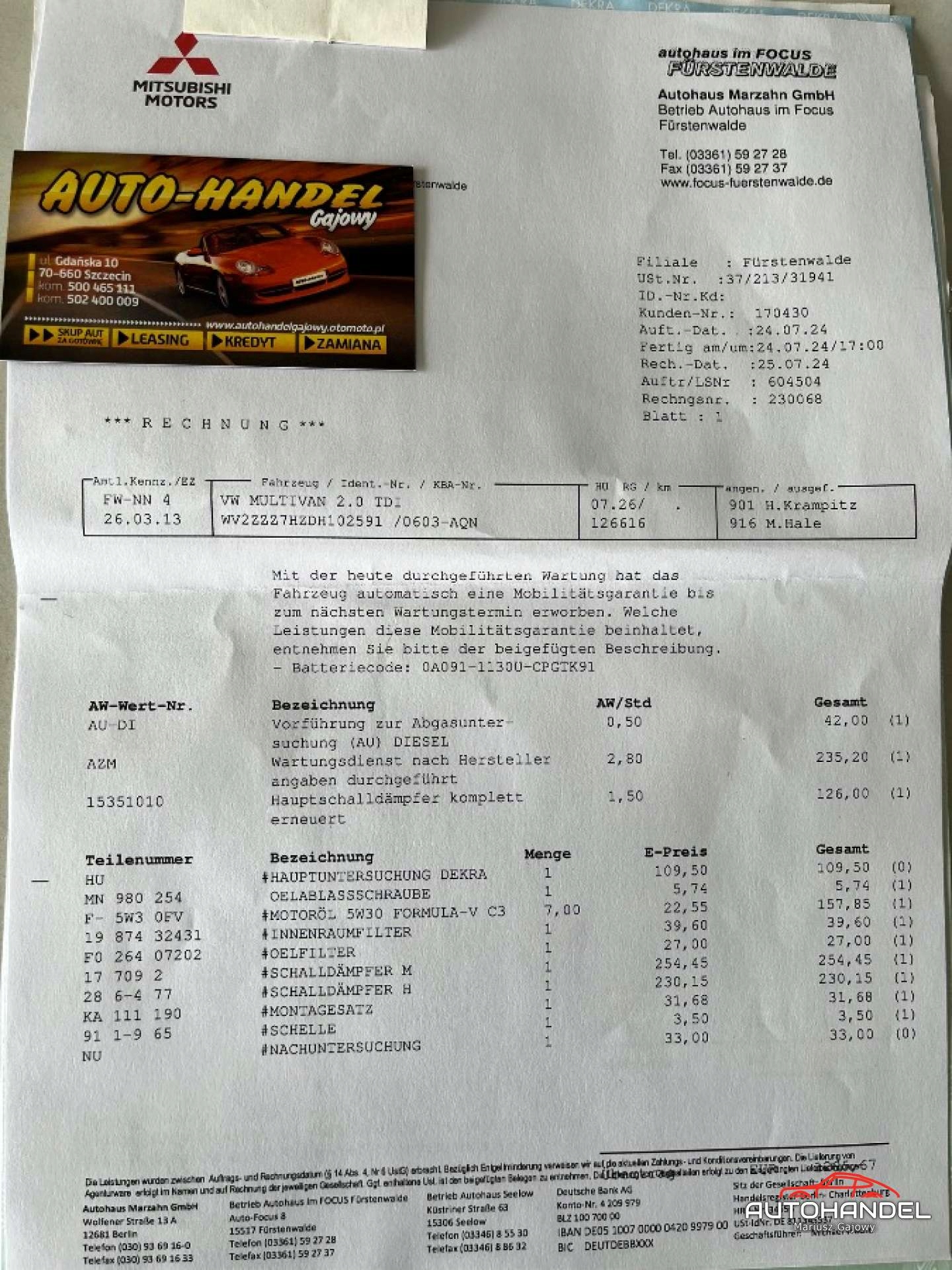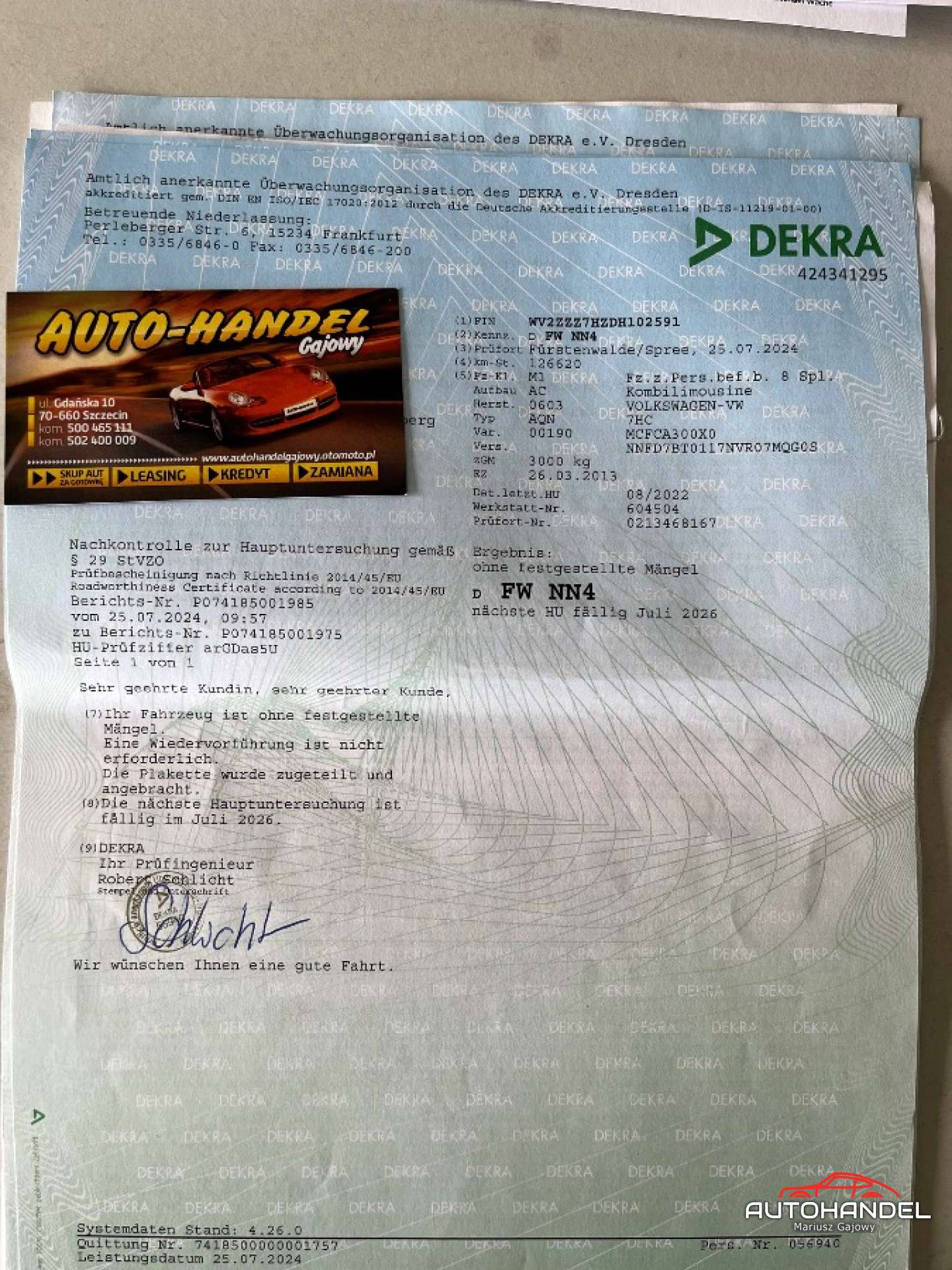 -service Book, документы от TUV и счета-фактуры от ремонта