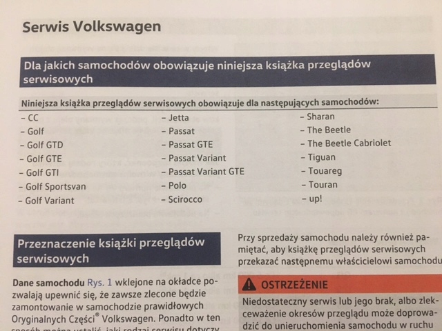 Volkswagen VW техосмотр 11-2016 польский оригинал новый