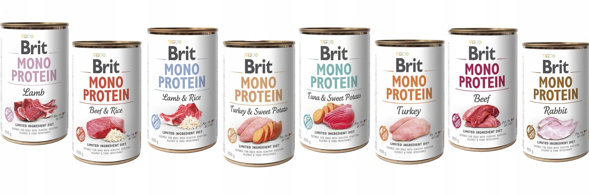 Консервы Brit Mono Protein для собак содержат только один источник белка, благодаря чему снижают риск пищевой аллергии и уменьшают симптомы ее возникновения