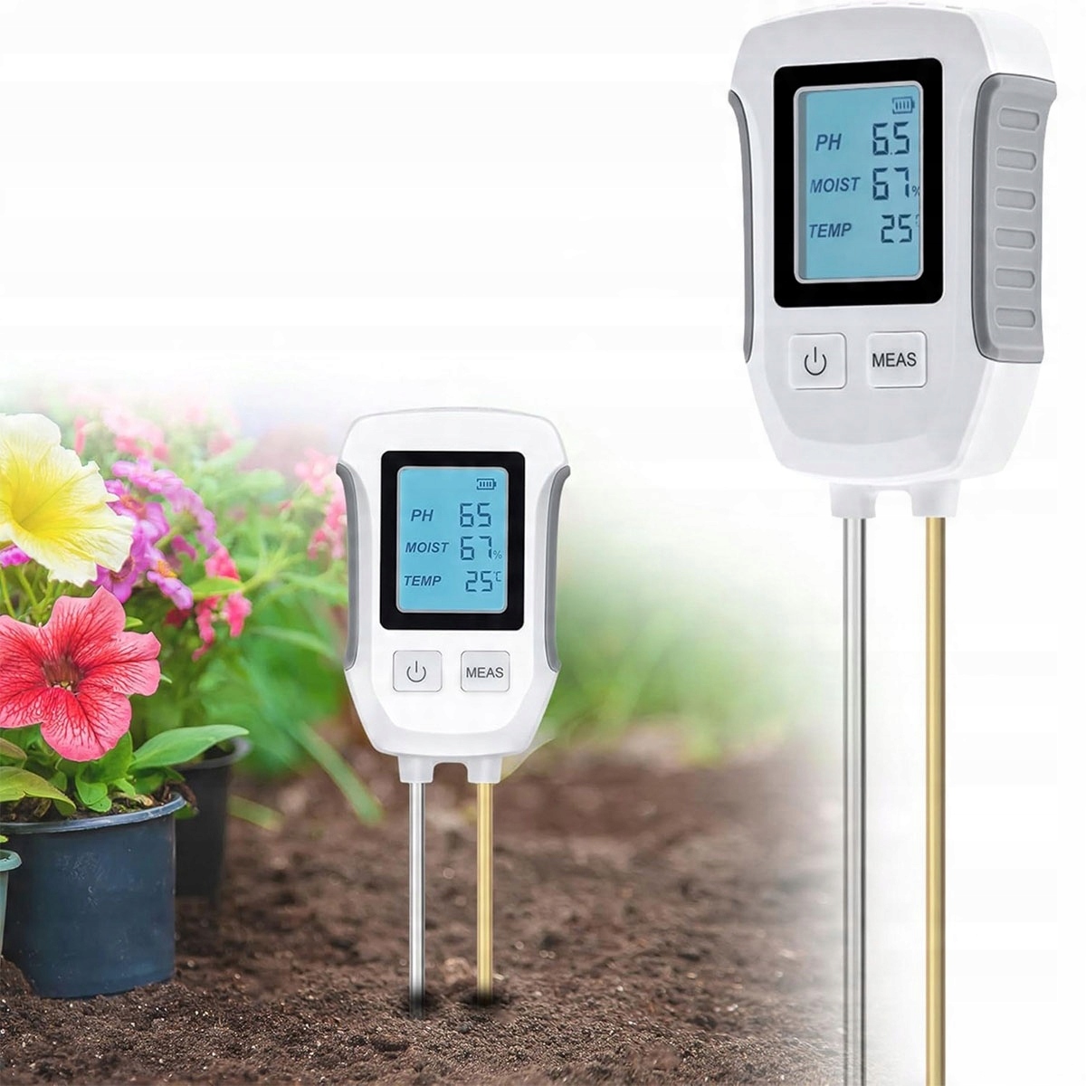 ➡️➡️3 в 1 измеритель почвы, измеритель pH почвы, цифровой тестер почвы, измеритель влажности с температурой/влажностью и подсветкой для садоводства, сельского хозяйства, уличных растений (белый)