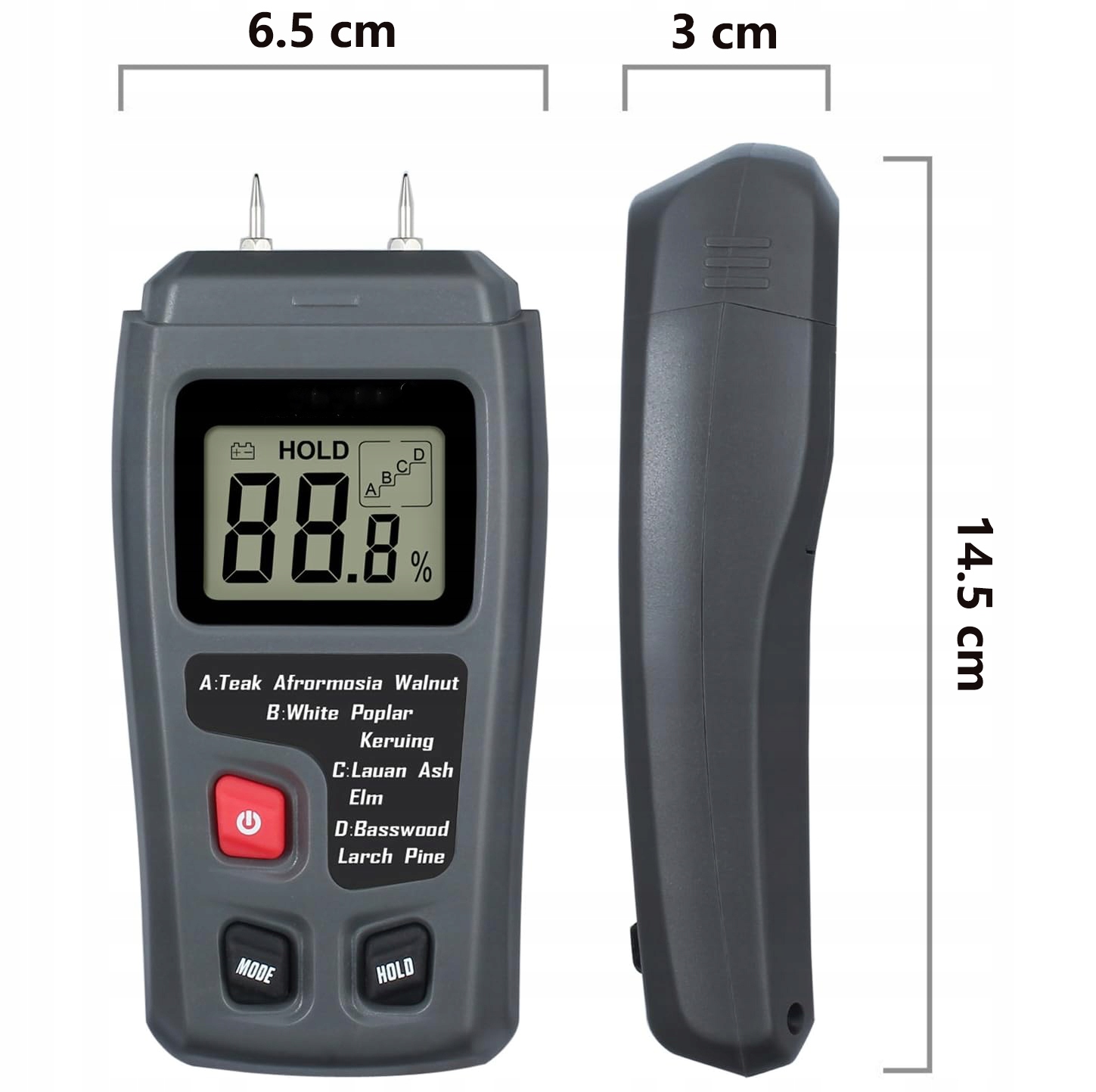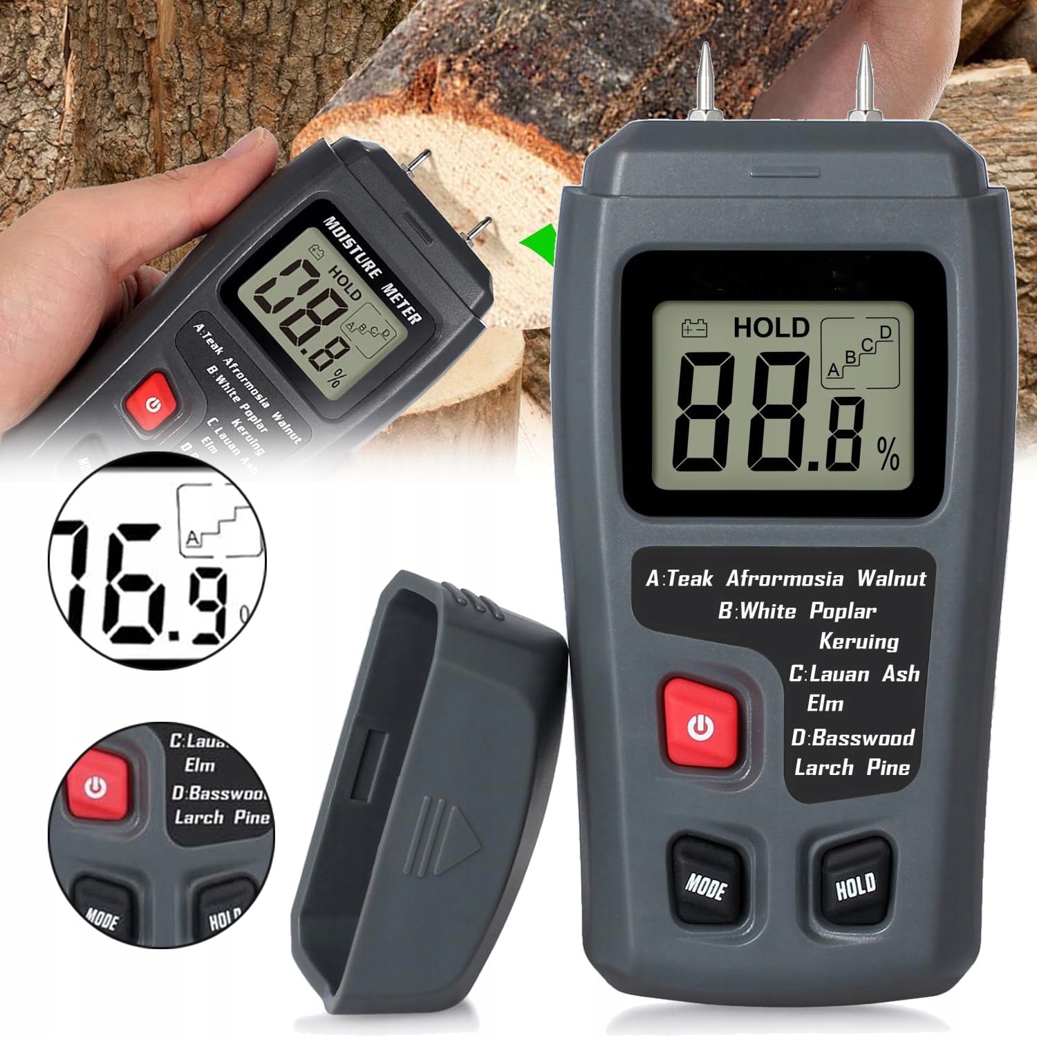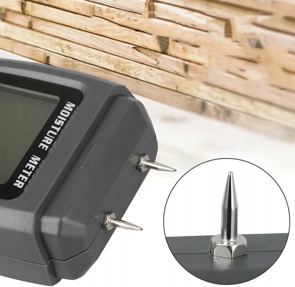 🪵🪵 Точное измерение: измеряет влажность древесины с помощью чувствительных электродных игл в диапазоне от 0 до 99,9% и точность менее ± 0,5%.