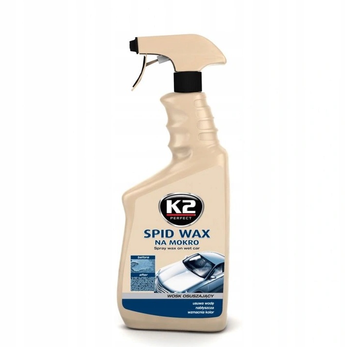 K2 Spid Wax — синтетический высыхающий воск, который используется для сушки и защиты краски. Нанесенный на вымытый кузов, он создает на краске тонкий гидрофобный слой, который отталкивает воду и заставляет ее стекать – эффект самовысыхания краски. Восстанавливает естественный цвет и блеск краски. K2 Spid Wax представляет собой воск-спрей, поэтому его нанесение не требует никаких усилий. Это альтернатива традиционной сушке полотенцем из микрофибры или водным скребком. Защищает краску от атмосферных воздействий. После использования K2 Spid Wax депиляция отпадает.
