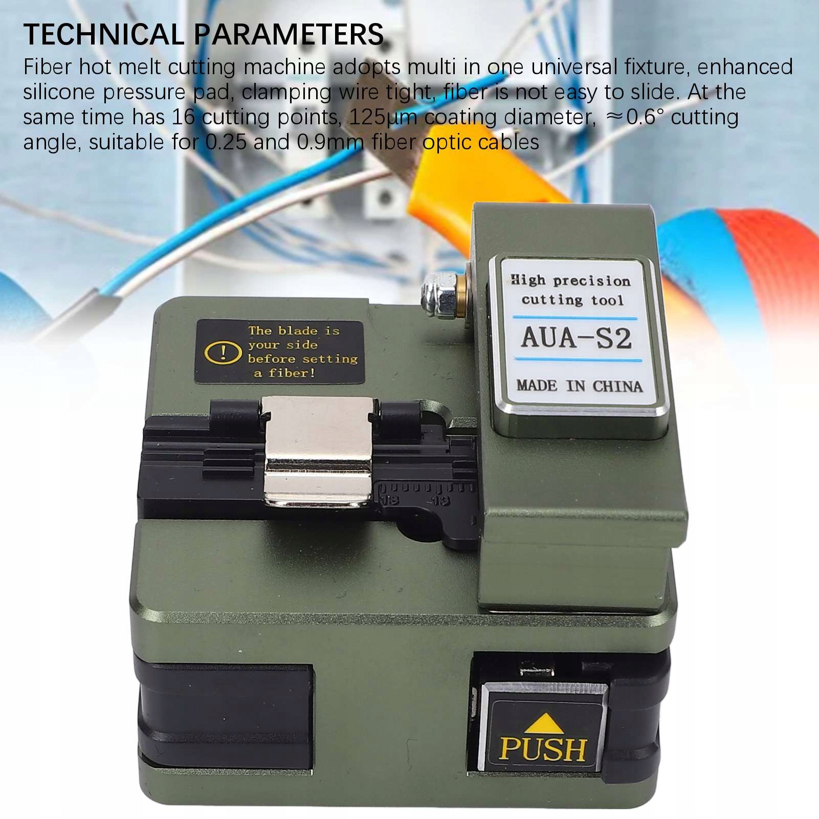 1. ТЕХНИЧЕСКИЕ ПАРАМЕТРЫ: Машина для горячей резки волокна имеет универсальный многофункциональный зажим, улучшенную силиконовую прижимную площадку, плотно прижимающую проволоку, волокно нелегко скользить. При этом он имеет 16 режущих точек, диаметр оболочки 125 мкм, угол резания ≈0,6°, подходит для оптоволоконного кабеля диаметром 0,25 и 0,9 мм