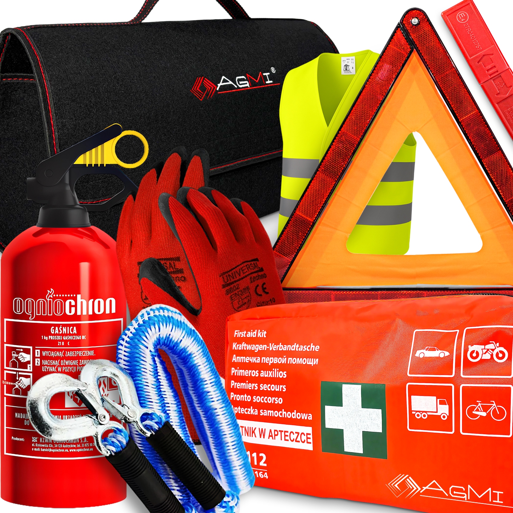 ✅ Огнетушитель 1кг | ✅ Аптечка первой помощи | ✅ Светоотражающий жилет | ✅ Треугольник | ✅ Перчатки | ✅ Буксирный трос | ✅ Сумка для транспортировки