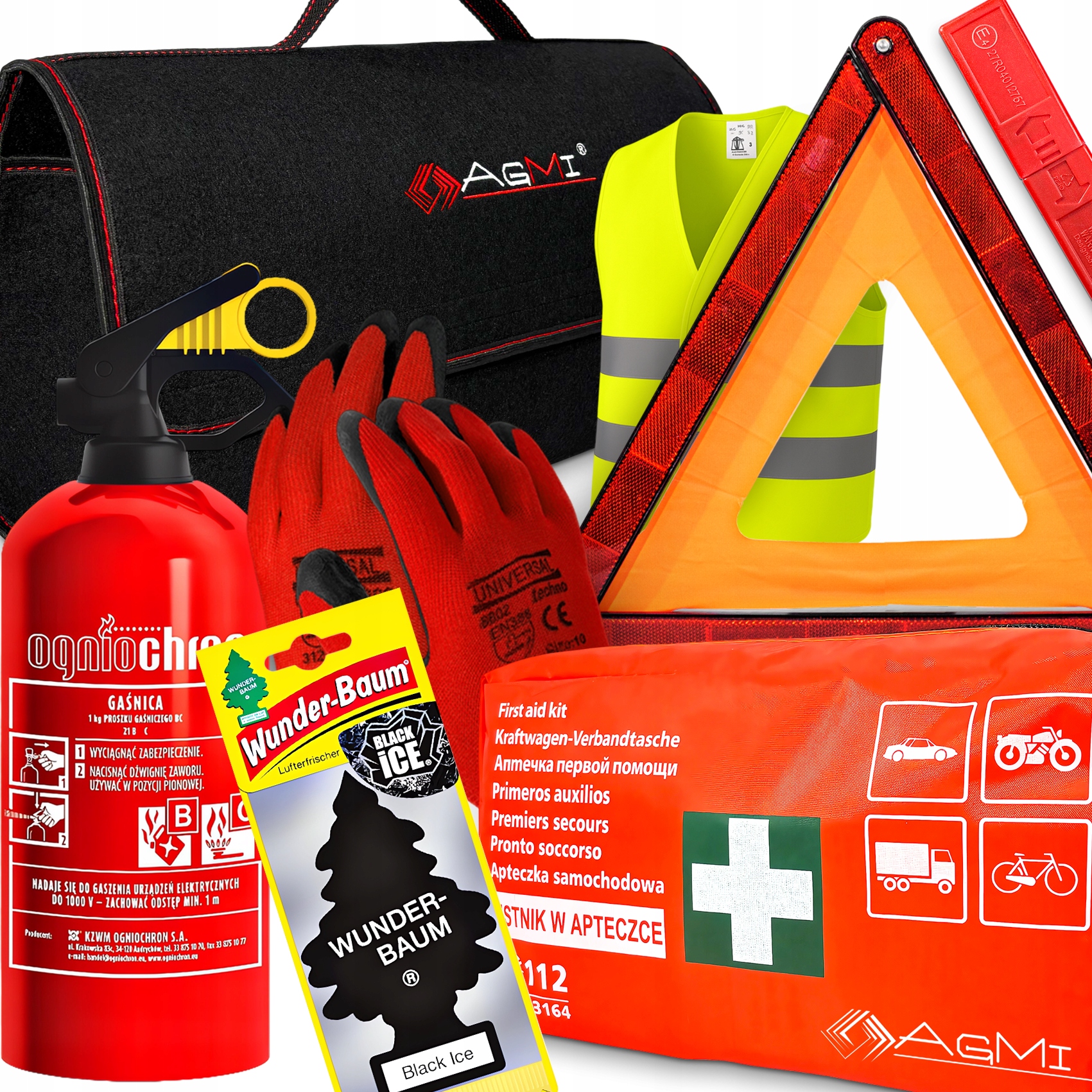 ОГНЕТУШИТЕЛЬ 1 КГ ПЕРВЫЙ КОМПЛЕКТ DIN13164 ЖИЛЕТ СУМКА НАБОР ТРЕУГОЛЬНЫХ ПЕРЧАТОК
