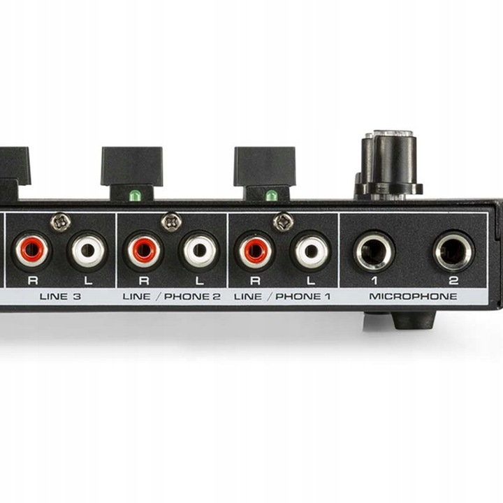 Микшер оснащен 4 входами RCA для подключения внешнего аудиооборудования. Два из этих входов можно переключать между «Line» и «Phono», поэтому к микшеру можно без проблем подключить проигрыватели без встроенного предусилителя. Третий канал можно переключать между двумя линейными входами, что дает в общей сложности четыре канала для подключения внешнего аудиооборудования. Также можно установить беспроводное соединение с устройством Bluetooth, например телефоном или планшетом. После подключения музыка, воспроизводимая на сопряженном устройстве, передается по беспроводной сети на микшер для использования в окончательном миксе. Для пения, представления или развлечения публики в качестве диджея предусмотрены два микрофонных входа с функцией Talkover. С помощью этой функции вы можете отключить музыку одним нажатием кнопки, чтобы отдать сигналу микрофона «приоритет». Конечно, есть и подключение для наушников, так что вы можете подготовить еще одну песню в качестве диджея.