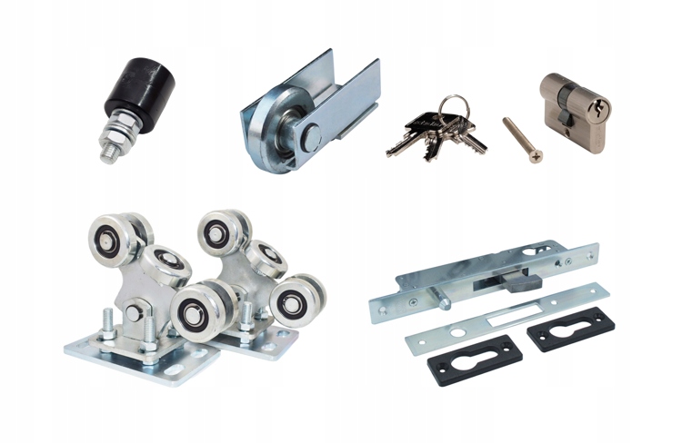 ворота + 2 стойки + замок с вставкой + направляющие ролики, напорный модуль, перекат.