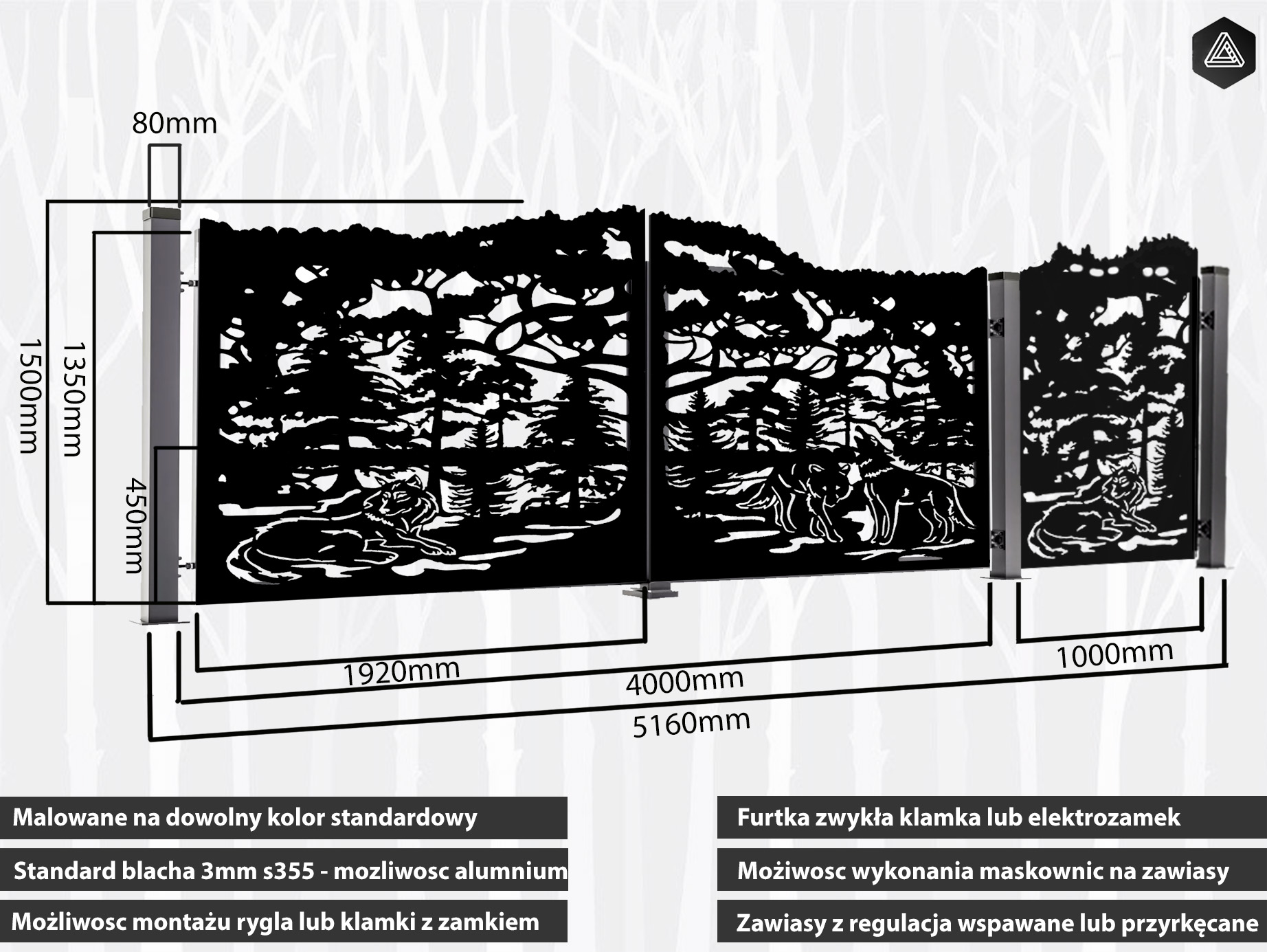Объект объявления - это крыло ворота с лесным рисунком, изготовленным из твердого стального листа толщиной 3 мм. Конструкция изготовлена из стальных профилей толщиной 3 мм, что обеспечивает долговечность и стабильность.