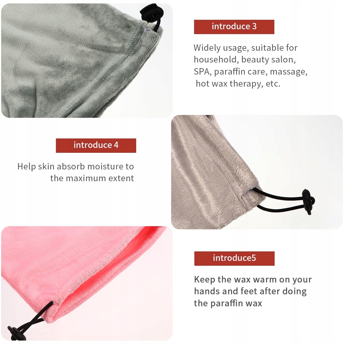 ✅После замачивания в парафине держите ноги или руки в тепле. Помогите максимальному проникновению влаги в кожу для достижения хороших результатов. Подходит для профессионального спа-парафинового салона или домашнего использования. В комплект входят 4 чехла для ног и 4 чехла для рук.