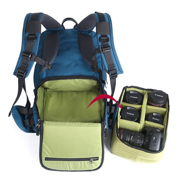 Вы можете упаковать все свое снаряжение в нужный вам рюкзак. В него поместится боди, три объектива, вспышка, ноутбук с диагональю 15,6 дюйма, большой штатив, кабели, карты памяти, блоки питания и т. д. Остальную часть рюкзака можно заполнить, например, одеждой.