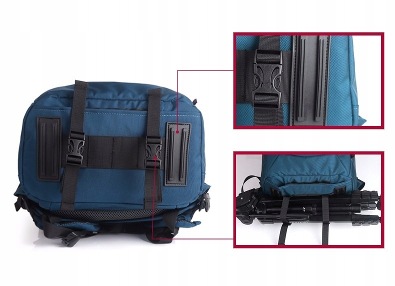 Вместительный фоторюкзак от Careell, предназначенный для фотоаппарата, фотоаксессуаров и ноутбука. Этот хорошо продуманный и очень качественно сделанный рюкзак изготовлен из прочного и водонепроницаемого материала - нейлона. В основном отделении рюкзака, в его нижней части, расположен пенный контейнер для объективов и фотоаксессуаров. Имеет мягкие отделения (прикрепляющиеся на липучке), благодаря которым можно разделить упакованные фотоаксессуары в любой конфигурации. Контейнер крепится ремнем и имеет ручки, позволяющие безопасно переносить его вне рюкзака. Он вставляется через карман быстрого доступа, расположенный в задней части рюкзака. В верхней части основного отделения рюкзака предусмотрено место для вещей и карман для ноутбука размером до 15,6 дюйма. В передней части рюкзака имеется широкий плоский карман, идеально подходящий для документов, папок или рекламных папок. Фотоштатив можно прикрепить специальными ремнями в нижней части рюкзака. По бокам рюкзака есть карманы для зонта или напитка. Рюкзак имеет жесткие мягкие лямки с дополнительной лямкой для крепления на уровне груди и широкий мягкий набедренный ремень для равномерного распределения веса во время длительных походов. На поясном ремне есть два кармана для мелочей. Его также можно отсоединить, если он не нужен. Задняя часть рюкзака покрыта толстой, дышащей и очень гибкой губкой эргономичной формы, что делает рюкзак очень удобным в ношении. Дополнительно производитель предусмотрел специальный чехол для защиты рюкзака и его содержимого от сильного и сильного дождя.