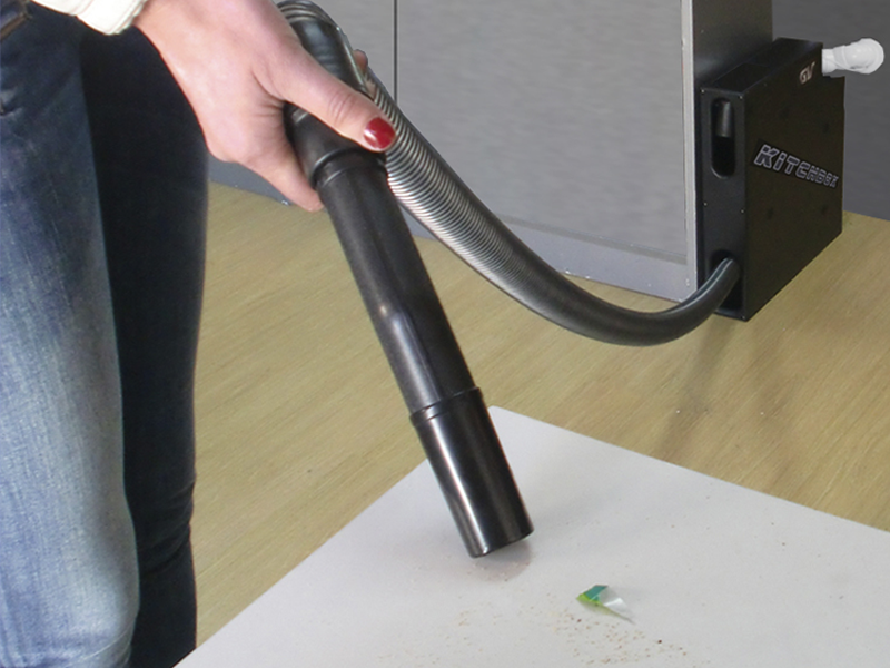 Если вы хотите убрать грязь, поднимите конец всасывающего шланга в горизонтальное положение, запустите центральный пылесос, а затем легко вытащите шланг из контейнера. После уборки отрицательное давление, создаваемое работающим пылесосом, позволяет легче спрятать шланг в контейнер, а перемещение конца шланга в вертикальное положение выключает пылесос. Таким образом вы избежите скручивания и разматывания переносного шланга, а очистка станет быстрой, легкой и удобной