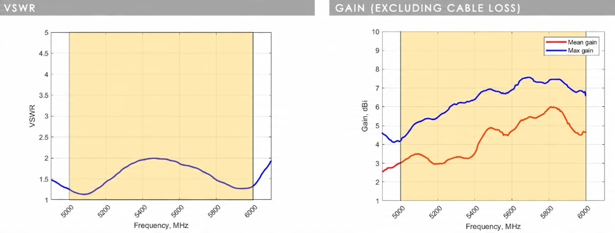 Усиление 5800–6000 МГц (макс.; среднее): 7,5 дБи; 6,0 дБи