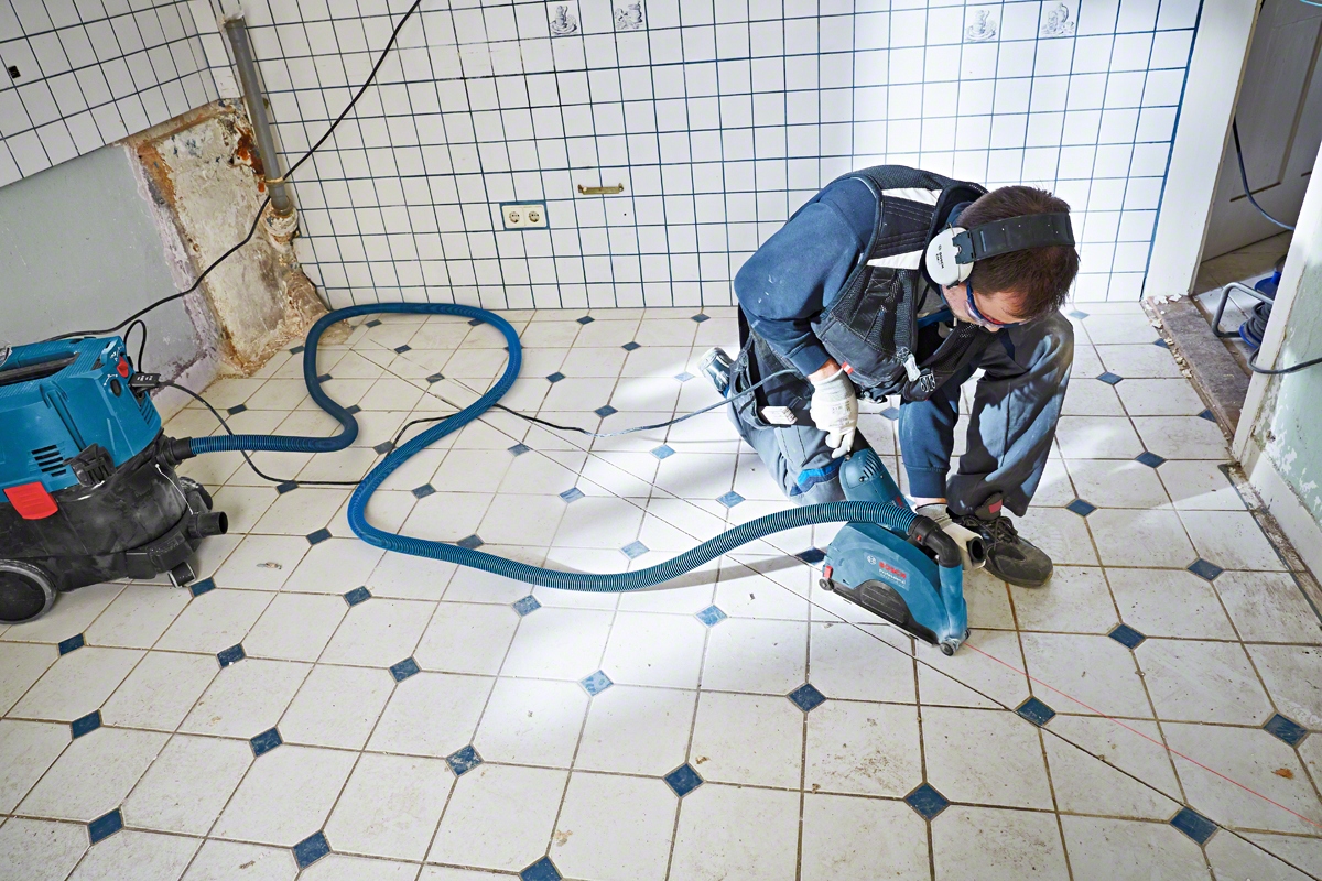 Всасывающая крышка GDE 230 FC-S BOSCH может быть легко подключена к пылесовому чистке , используя вращающееся соединение в верхней части корпуса
