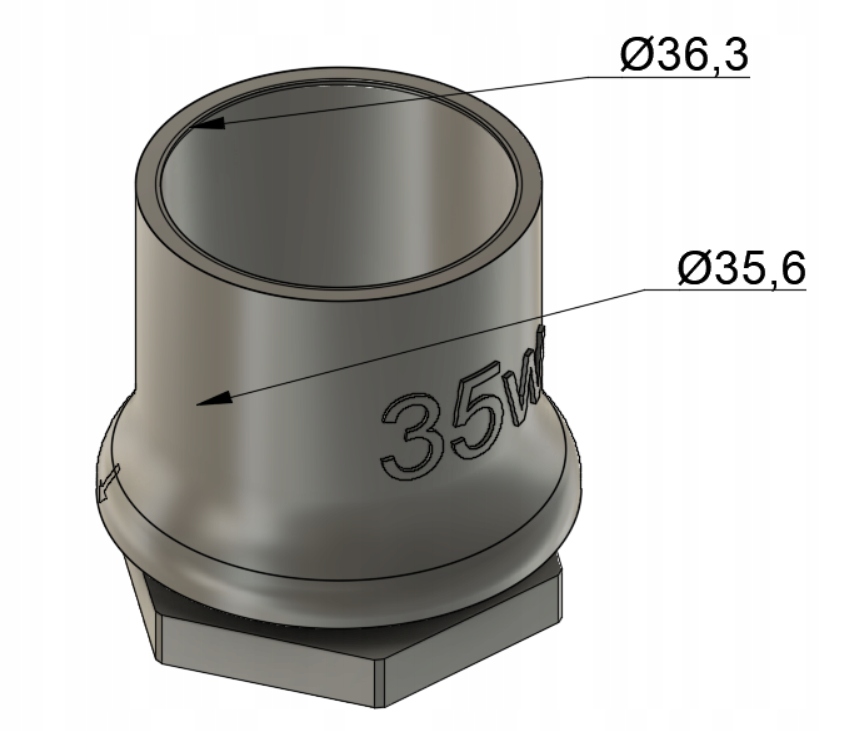Продуманная форма адаптера дает нам определенный диапазон при выборе необходимого отверстия. пила. Однако отверстие не может быть меньше Ø35, потому что тогда переходник не подойдет.