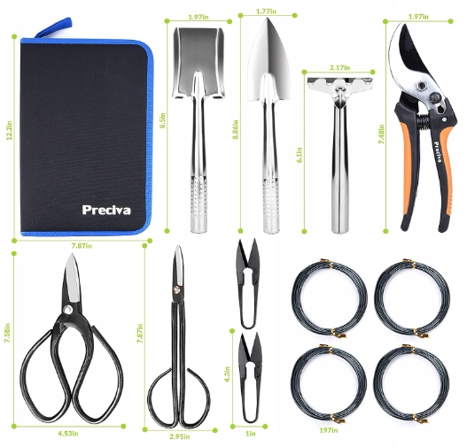 набор Preciva Bonsai 13 в 1 инструментах с набором обрезки ножниц. Набор мини -лезвий набора проводов бонсай и мешок для хранения