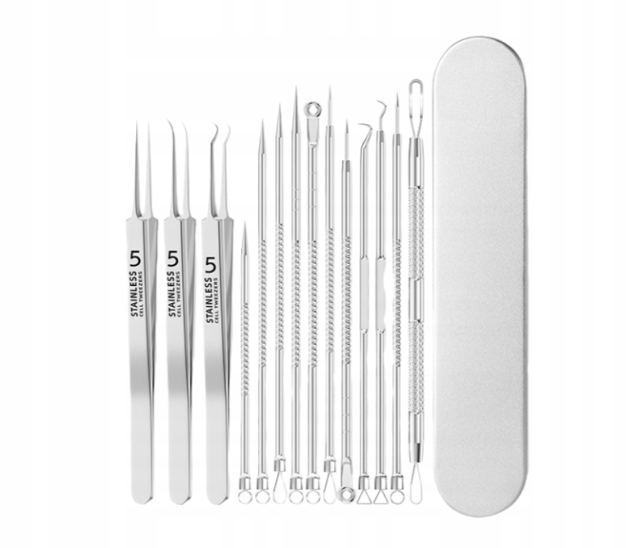 Набор 14 в 1 для удаления черных точек от прыщей с помощью пинцета + ложки + иглы.