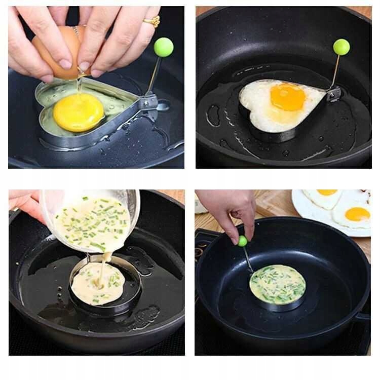 Формы просты в использовании - просто нанесите их на кастрюлю, а затем сломайте яйцо внутри. Вы получите яйцо в интересной форме!