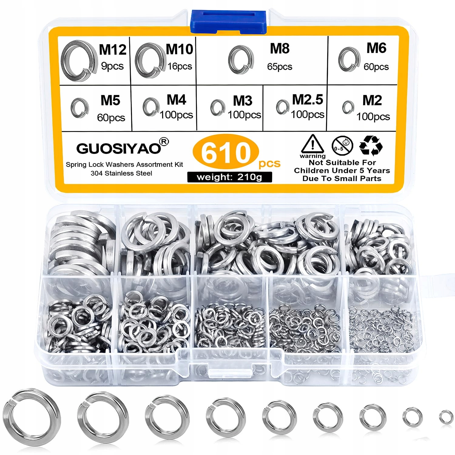 Набор из 610 пружинных прокладков - это полное решение, которое идеально подходит для защиты винтовых соединений. Благодаря различным размерам (M2, M3, M4, M6, M7, M8, M10, M12), эти колодки обеспечивают всестороннее использование во многих областях промышленности и ежедневных DIY. Пружинные прокладки, также называемые блокирующими прокладками, помогают предотвратить откручивание винтов и крышек в результате вибрации, напряжения или механических движений.