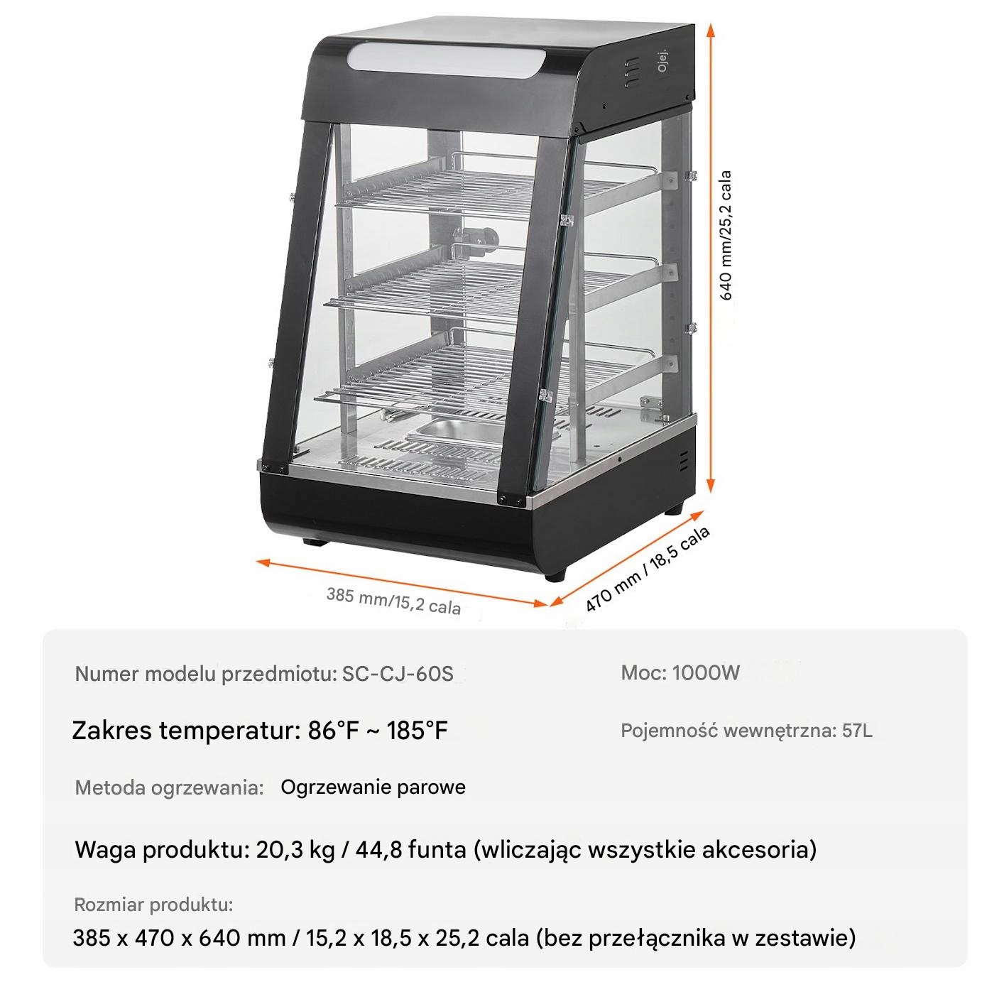 Практическое и элегантное место отопления с емкостью 57 литров и мощностью 1000 Вт является обязательным для тех, кто хочет сохранить свежесть и температуру посуды в течение дня. Благодаря интуитивной работе и современному дизайну, она идеально подходит для гастрономии и дома!