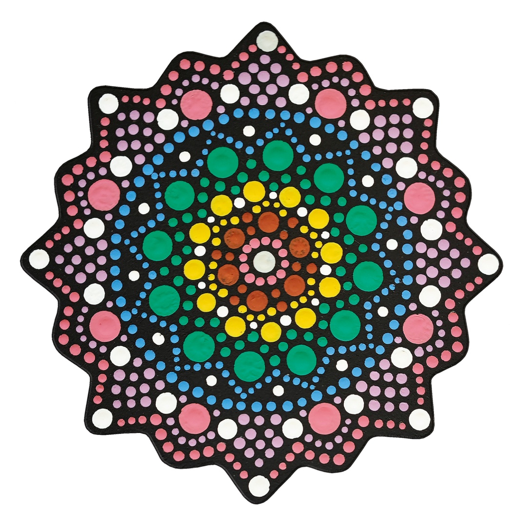 Эта расслабляющая техника состоит в том, чтобы нанести точки краски для создания гармоничных, подробных дизайнов. Идеально стимулировать творчество и в то же время, предлагая момент расслабления.